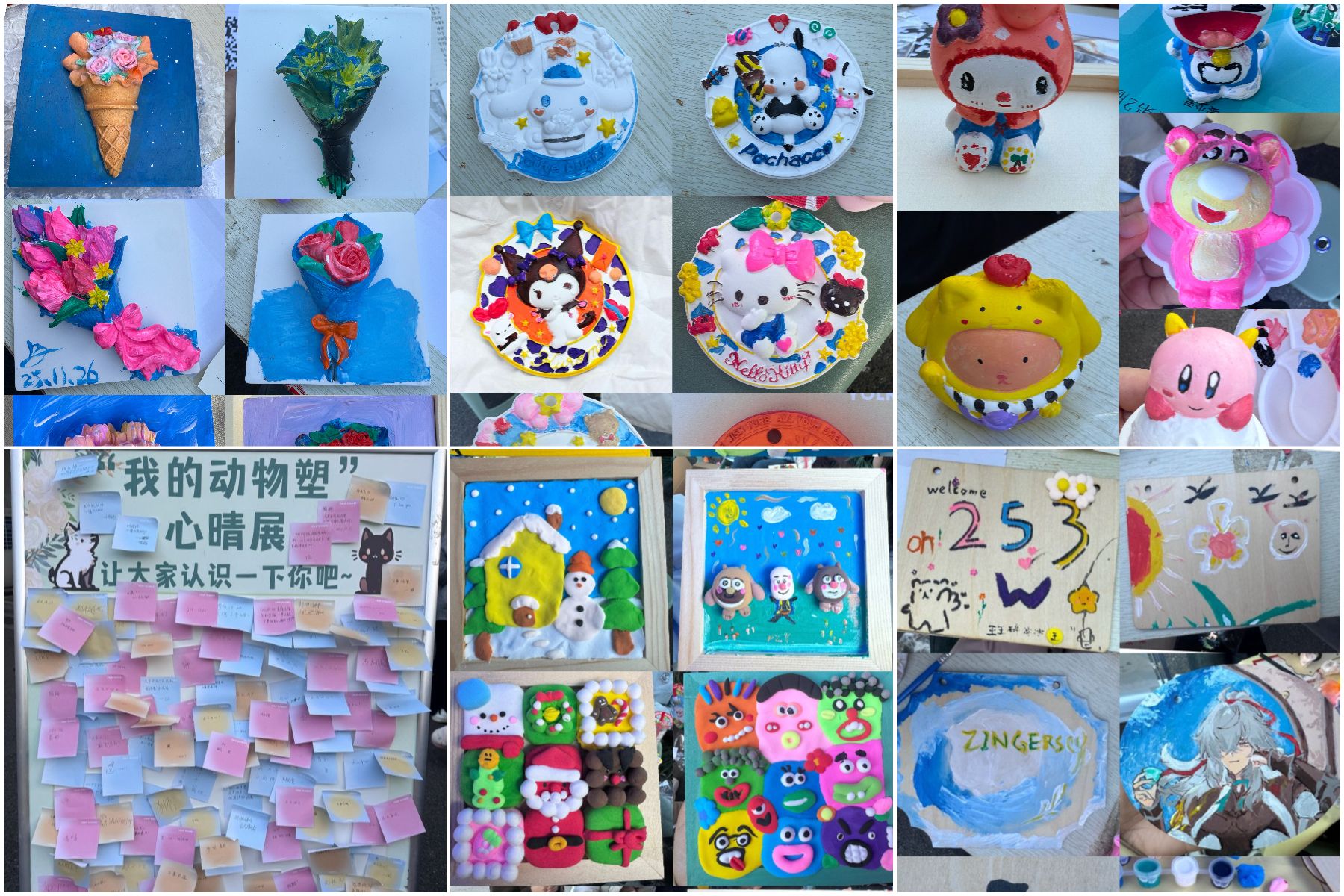 本次游园会的活动现场设置了“萌宠彩绘屋”石膏娃娃DIY、“我的动物塑”心情展、“玩偶合影”打卡站和“暖冬萌宠门牌和黏土画”手作坊四项趣味环节。在“萌宠彩绘屋”石膏娃娃DIY环节,学生们用画笔为纯白石膏赋予独特模样,在色彩晕染里解锁专属创意;在“我的动物塑”心情展环节,学生们以动物为载体抒发心声,用文字传递内心温度;在“玩偶合影”打卡站前,参与者排起长队与可爱的玩偶吉祥物拍下治愈瞬间,还收获了小猫钥匙扣作为暖心纪念;在“暖冬萌宠门牌和黏土画”手作坊环节,大家充分发挥想象力,用黏土创作专属作品,在动手实践中放松身心。现场欢声笑语不断,参与的学生们在动手创作与互动分享中,收获了满满的快乐与温暖。