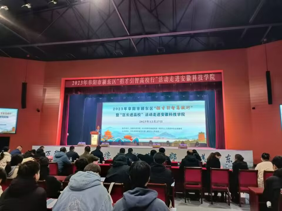 学校邀请合肥市、滁州市、阜阳市、亳州市等各区县近100家企业参加。招聘会当天,阜阳市颍东区、亳州市蒙城县分别在大学生活动中心举行市情推介和人才政策宣讲,校党委委员、副院长黄远友出席宣讲会并致辞。