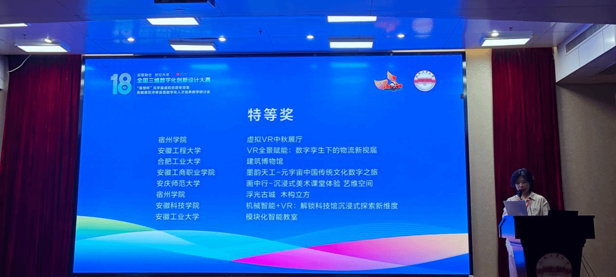 9月20日,第18届全国三维数字化创新设计大赛安徽省赛在合肥工业大学成功举办,建筑学院副院长吴伟东、专业教师宋永伟、刘昕烁带队参赛,建筑学专业李曹仝、张浩坤等同学负责的参赛项目“机械智能+VR:解锁科技馆沉浸式探索新维度”荣获安徽省赛区特等奖,并入围全国总决赛。