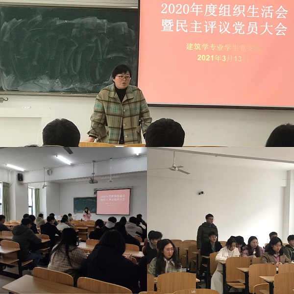 3月13日下午,建筑学院建筑学专业学生党支部在致知楼C203召开2020年度组织生活会暨民主评议党员大会。建筑学院党委副书记谢宜勤、建筑学专业学生党支部书记阮怀思、建筑学专业学生党支部学生党员出席了会议,会议由阮怀思支持。