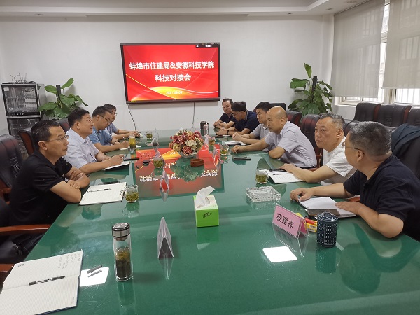 9月5日下午,蚌埠市住房和城乡建设局组织召开院地科技合作对接会。蚌埠市住房和城乡建设局党委委员、总工程师刘士俊,总师办主任卢春华;科研处副处长李同杰,资源与环境学院院长李孝良,建筑学院院长张远兵、副院长吴伟东、张伟及相关人员参加会议。会议由蚌埠市建筑设计研究院集团有限公司执行董事、总经理凌建祥主持。