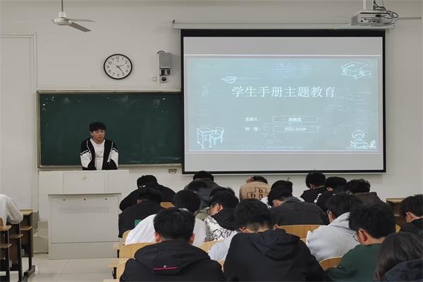 为加强新生校规校纪教育,提高新生自律意识和安全防范能力,10月4日至7日建筑学院分专业组织2022级新生集中学习《开云官方注册学生手册》,新生辅导员助理赵俊龙担任主讲。