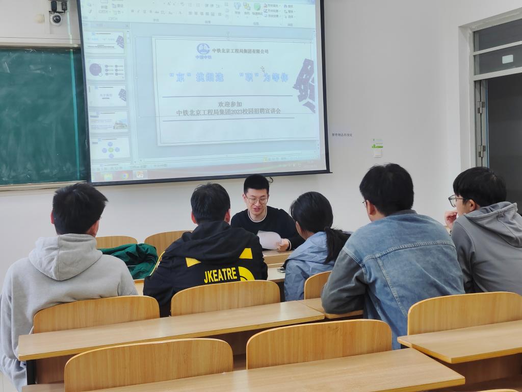 为进一步促进2023届毕业生就业,扎实做好毕业生就业服务工作,10月12日下午建筑学院在致知楼A107举办中铁北京工程局集团城市轨道交通工程有限公司专场宣讲会暨招聘会,2023届毕业生积极参加。