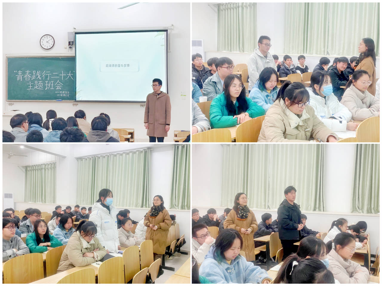 为引领学生深入学习宣传贯彻党的二十大精神,3月17日,建筑学院在致知楼C105开展新学期第一次“青春践行二十大”主题班会观摩活动。主题班会由2022级建筑学专业辅导员沈德艳主持,建筑学院党委书记傅友福,党委副书记谢宜勤,财经学院、建筑学院全体辅导员观摩,2022级建筑学专业全体学生参加。