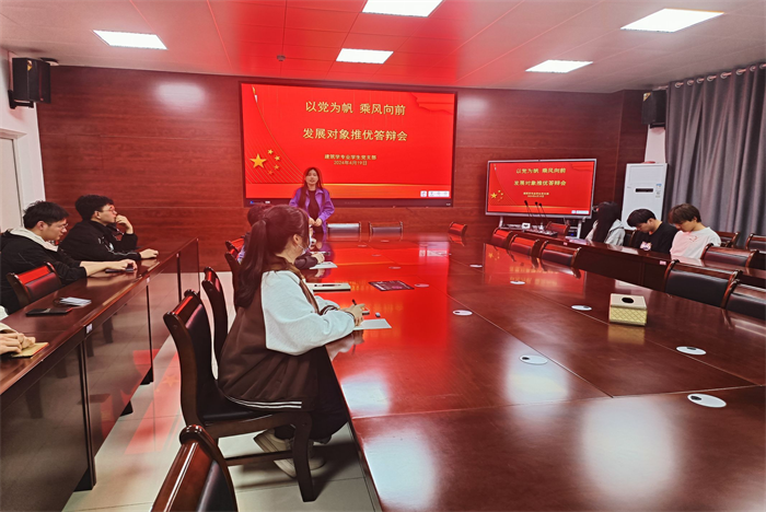 “欲筑室者,先治其基。”党的基层组织建设是党的全部工作和战斗力的基础,确保党员发展质量更是加强党的基层组织建设的重点。为深入学习贯彻习近平总书记关于全面从严治党的重要讲话和指示精神,进一步严格党员发展程序,提高党员发展透明度和认可度,严把党员“入口关”,4月19日至4月22日,建筑学院各学生党支部分别开展发展对象推选答辩会。会议由各学生党支部书记主持,学院党委副书记谢宜勤莅临指导,各支部党员及入党积极分子参加答辩会进行观摩学习。