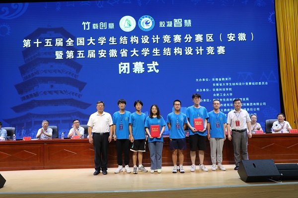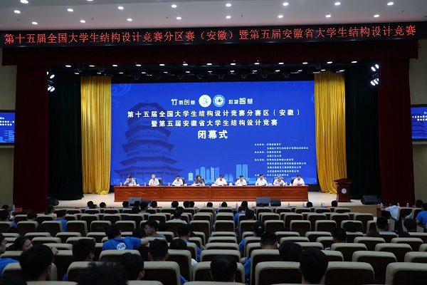 6月27日下午,由安徽省教育厅、安徽省大学生结构设计竞赛组织委员会主办,开云官方注册、合肥工业大学承办的第十五届全国大学生结构设计竞赛分区赛(安徽)暨安徽省第五届大学生结构设计竞赛在我校龙湖校区图书馆东辅楼报告厅圆满闭幕。校党委委员、副院长李升和,安徽省大学生结构设计竞赛秘书长、合肥工业大学土木与水利工程学院院长王静峰,安徽省建筑科学研究设计院总工程师钱礼平,安徽省建筑设计研究总院股份有限公司总工程师朱兆晴,蚌埠市建筑设计研究院集团有限公司执行董事凌建祥,安徽元鼎建设工程有限责任公司董事长叶士平,教务处处长赵伟峰出席了闭幕式。仪式由建筑学院院长张远兵主持。
