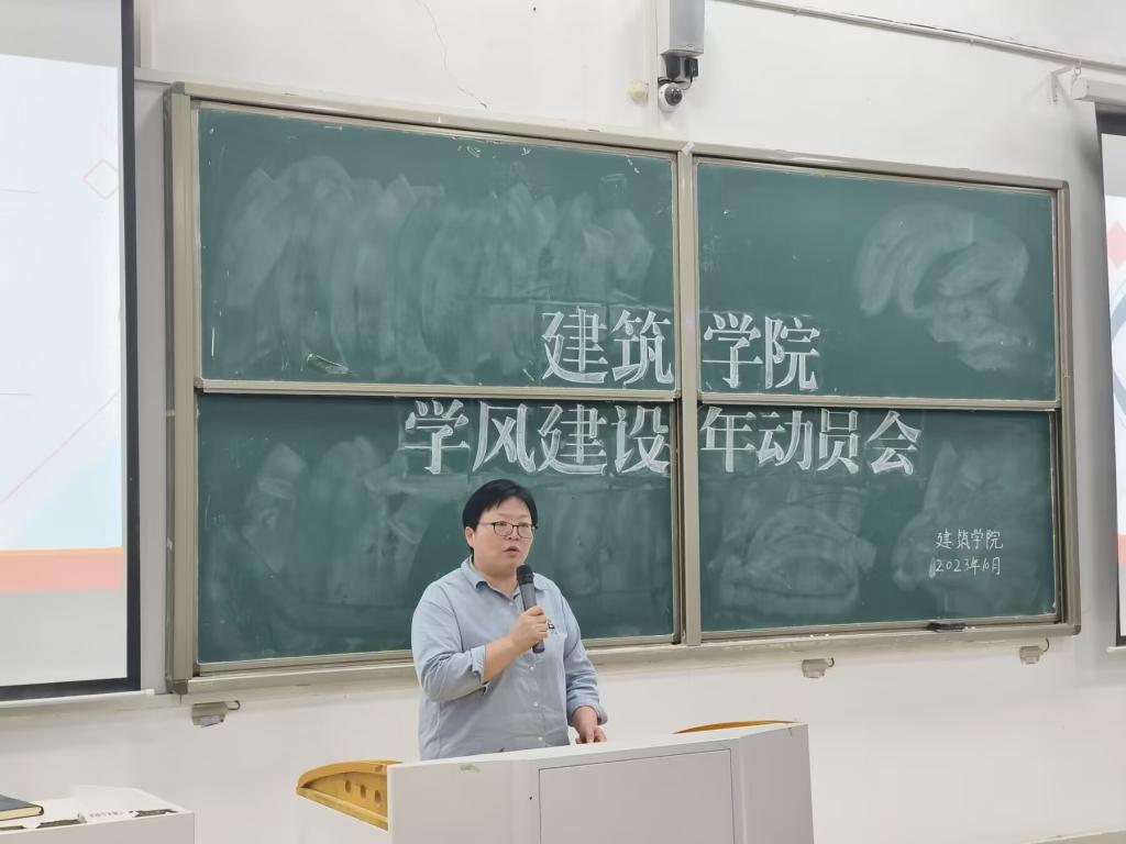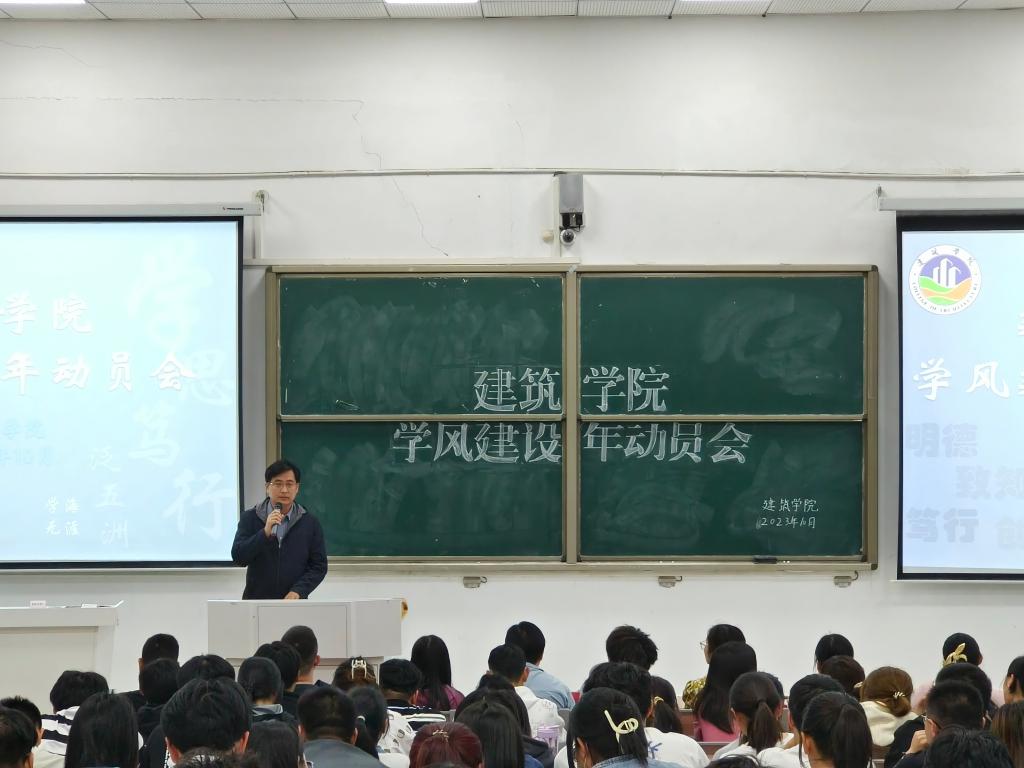 为迎新校教学审核评估,加强学院学风建设,10月31日晚,建筑学院在致知楼B111召开“学风建设年”动员会。学院党委副书记谢宜勤、副院长吴伟东、全体辅导员、各班级主要学生干部和学生组织全体成员参加本次会议。大会由专职辅导员武辉主持。