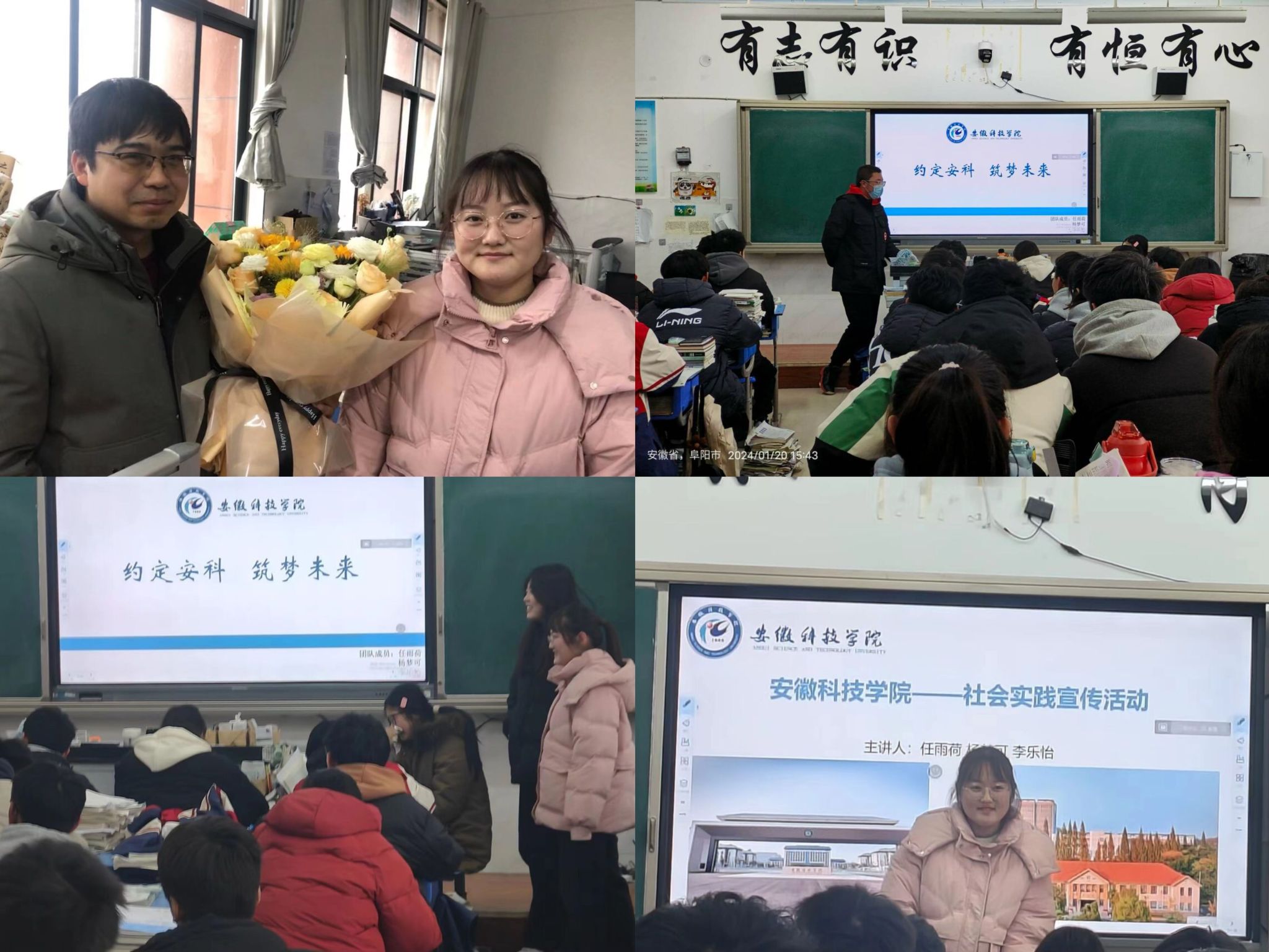 为扩大学校知名度和影响力,增强学校与优质生源中学联系,1月29日,建筑学院风景园林专业2023级任雨荷、杨梦可、李乐怡等同学组成的实践团队来到安徽省阜南一中中岗校区开展“我回母校报喜讯”2024寒假社会实践专项活动。