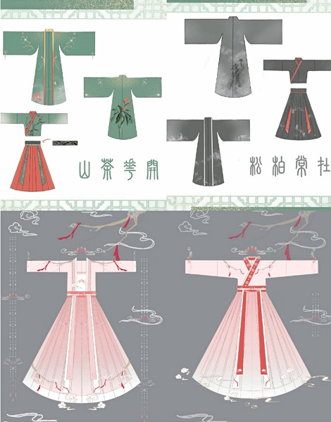 本次共有17件参赛作品。有的作品以《山海经》为创作背景,将奇幻故事融入汉服设计中;有的作品将安徽省省鸟灰喜鹊、省花皖杜鹃、省树黄山松作为设计元素融入汉服设计中,创作出了独特的徽韵汉服。