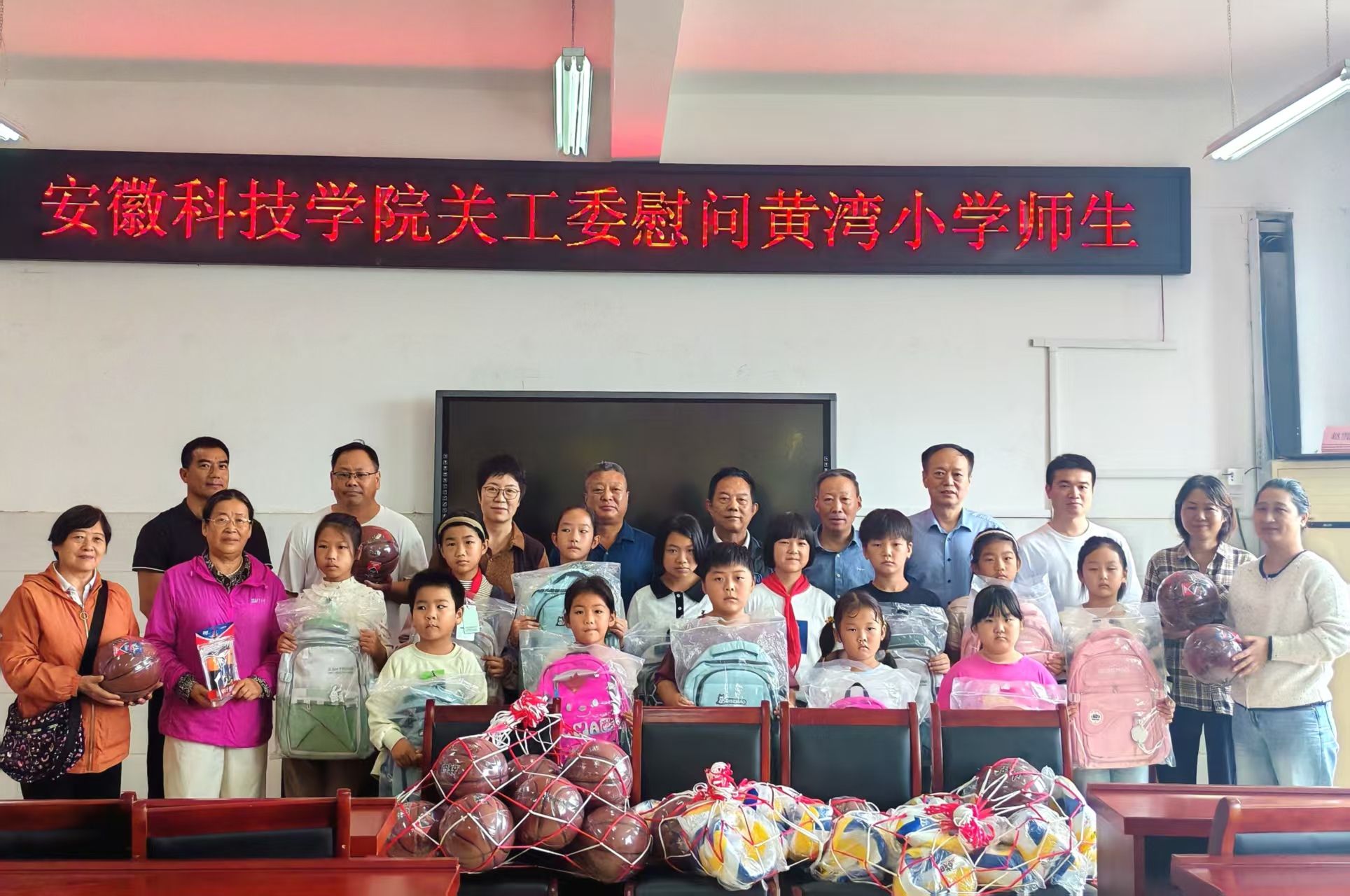 9月26日,校关工委副主任杨秀军一行,赴凤阳县黄湾乡中心小学开展关工助学活动,为振兴乡村基础教育、关爱留守儿童献爱心。黄湾乡党委副书记姜超,我校挂职干部、驻村工作队队长、村委第一书记宛传平,黄湾中心小学校长王传顺等热情接待了关工委一行,并进行了深入交流。