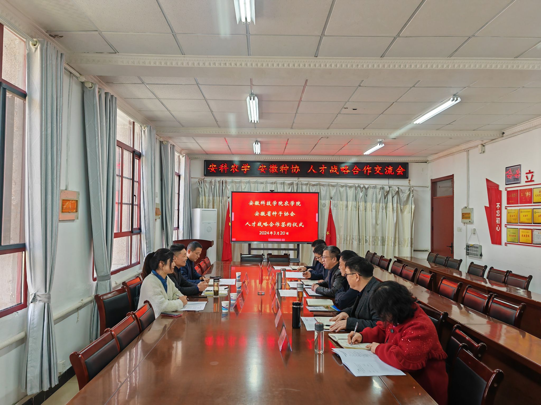 为继续扩大校企合作成果,拓宽“访企拓岗”和毕业生就业渠道,将高校人才精准输送到企业,解决企业用人难、学生求职难问题,3月20日上午,农学院与安徽省种子协会在学院会议室召开座谈会,举办签订人才战略合作协议仪式。安徽省种子协会秘书长叶飞、副秘书长束晶晶、办公室主任杨琴,农学院党政班子、种业科学系主任程昕昕、党政办副主任汪道兵等出席签约仪式。仪式由农学院党委书记何世潮主持。