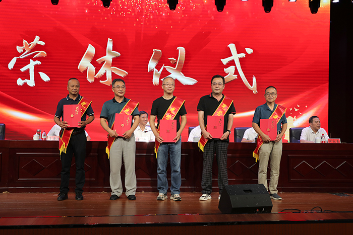 会上,王孝义宣读了2022年以来学校在教学、师德、科研、管理等方面获得省级以上表彰和奖励人员名单,并带领新进教师进行了集体入职宣誓。本次会议还向2022年以来退休教职工代表、获得“光荣执教三十年”荣誉称号的教师代表颁发了证书,新进教师代表向他们献花并合影留念。