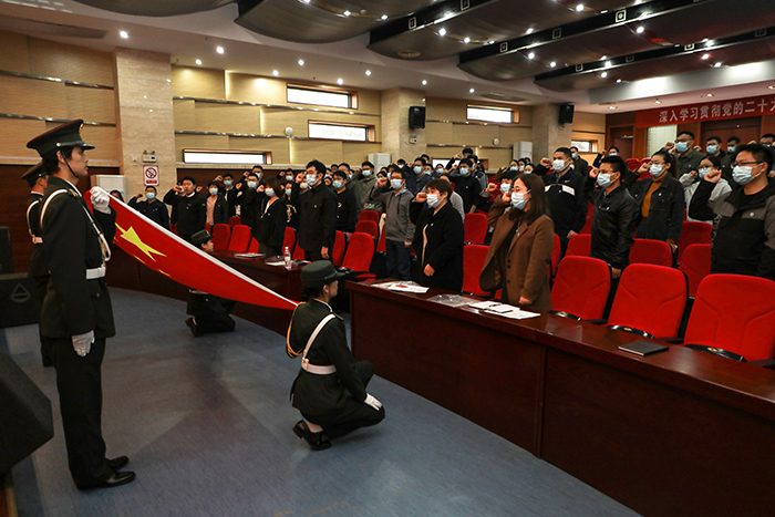 开班仪式上,食品工程学院新进教师李真博士作为新进教师代表发言,全体新进教师佩戴校徽面向国旗举行了庄严的入职宣誓仪式。