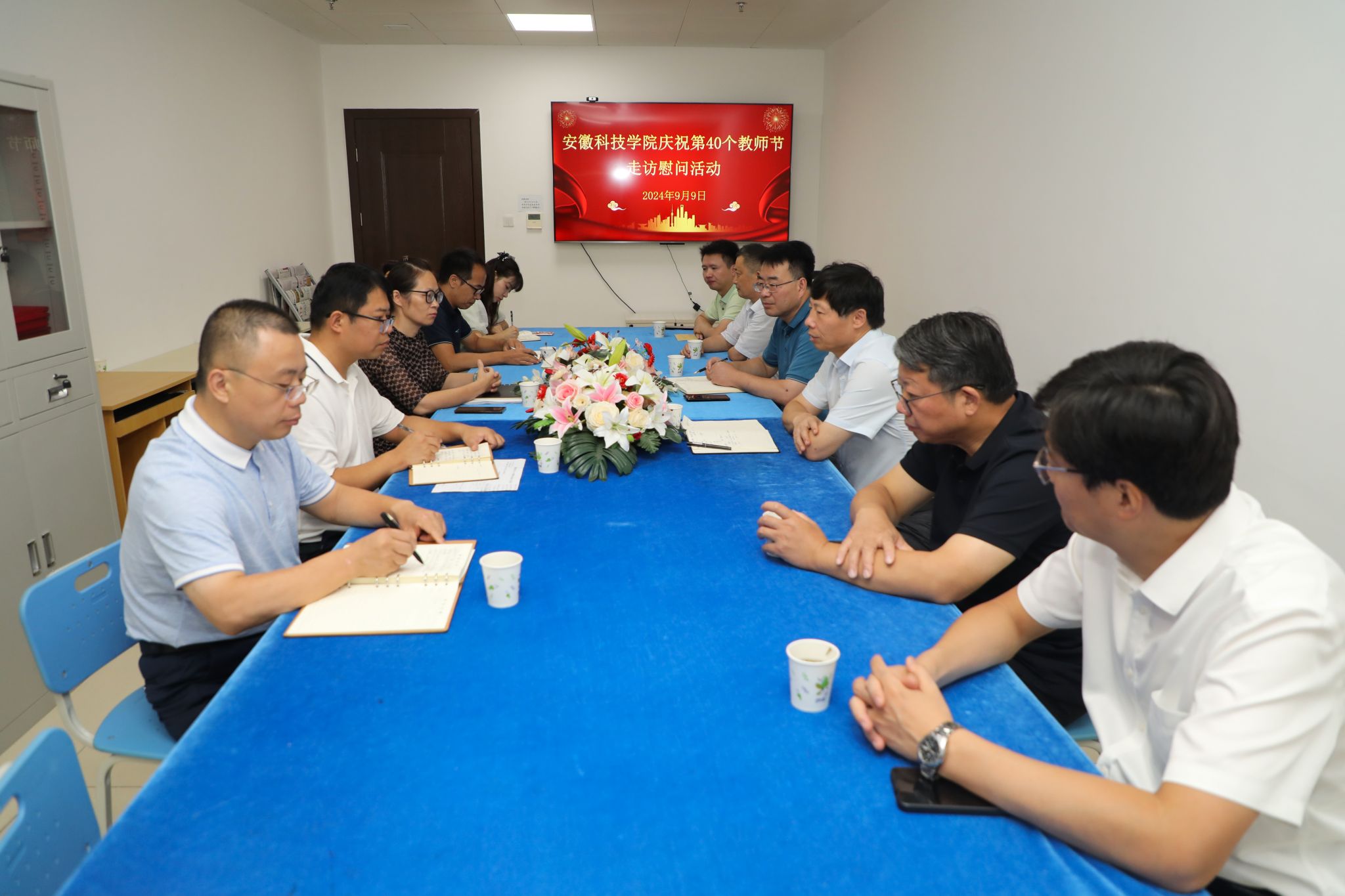 在第40个教师节来临之际,校党委书记时伟,党委委员、副院长李升和,党委委员、副院长赵伟峰,在组织部,人事处,工会等相关部门负责人陪同下,先后来到凤阳校区和龙湖校区走访慰问高层次人才代表,向他们致以诚挚的问候和节日的祝福。