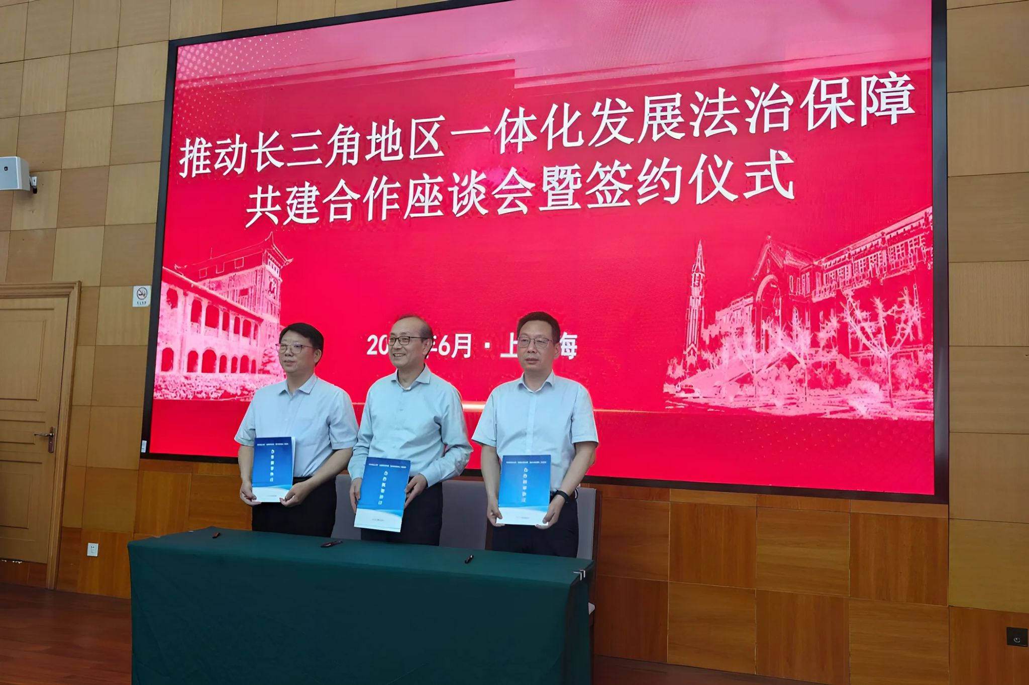 李升和在讲话中指出,推动长三角地区一体化发展法治保障共建合作,既是落实国家长三角一体化发展战略的生动实践,也是深化校地合作、推动法治建设与高等教育融合发展的关键举措。他提出三点意见:一是强化法治研究与学科融合,以法治研究、人才培养、社会服务为着力点,搭建高水平法治研究平台,联合开展长三角乡村振兴、生态环保、低空经济、半导体和信息产业、基层治理等领域法治课题研究,推动法学与经济学、信息产业等多学科协同,形成“法治+”特色研究方向;二是深化人才培养与产教融合,共建实践基地,联合培养复合型人才,推动法学教育与地方实务结合,为长三角输送既懂法律又熟悉区域发展的专业人才;三是服务基层治理与成果转化,以区域为试点,开展法治乡村建设、企业合规指导、矛盾纠纷化解等行动,将研究成果转化为基层治理效能,夯实长三角一体化发展的社会法治基础。