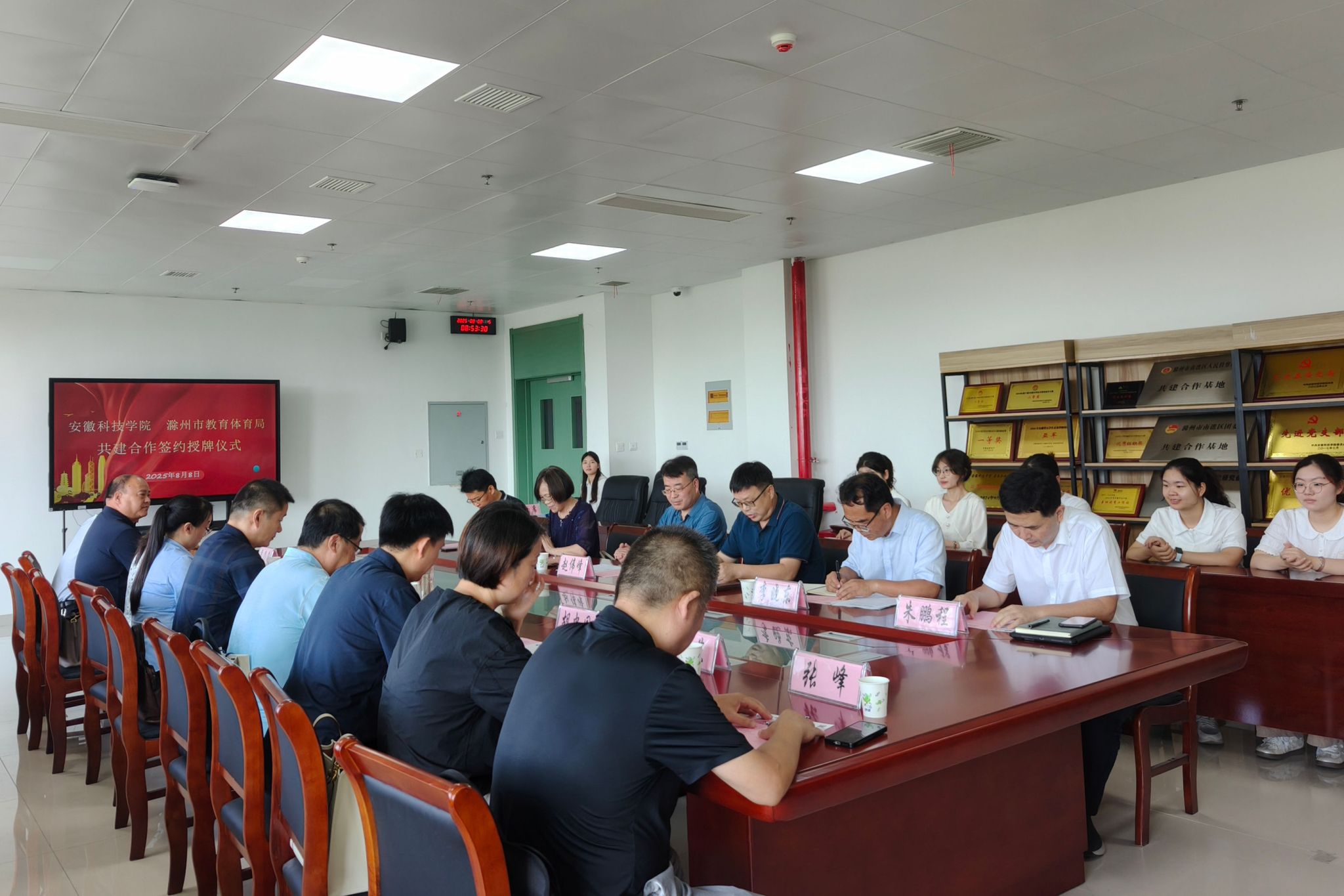 8月8日上午,校党委委员、副院长赵伟峰出席开云官方注册与滁州市教育体育局共建合作签约授牌仪式。滁州市委教体工委委员、市教体局副局长李志及教体局相关科室负责人,滁州市区六所中学负责人;教务处、人文学院、外国语学院有关人员出席仪式。仪式由教务处副处长(主持工作)舒英杰主持。