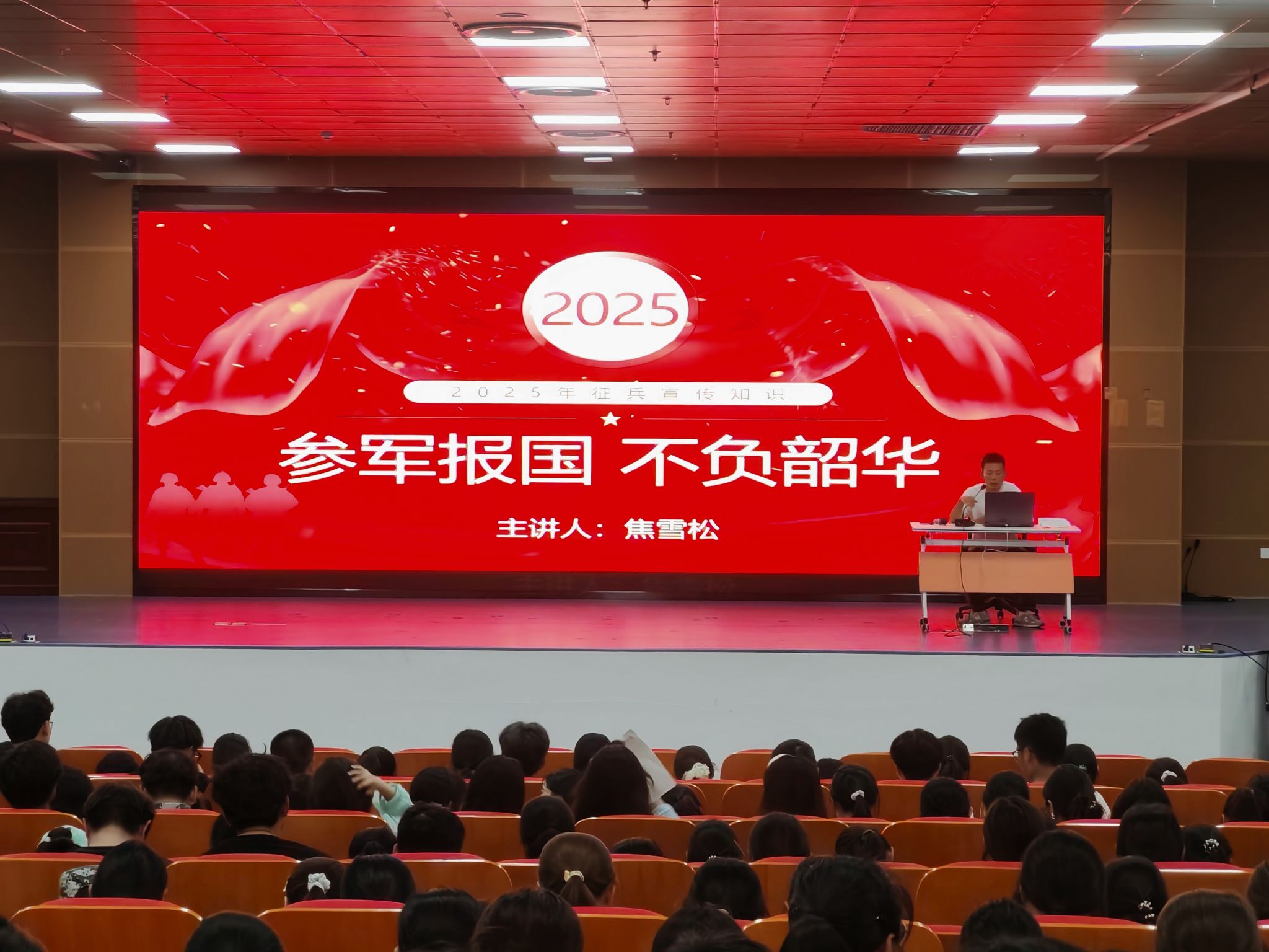 “国无防不立,民无兵不安”,“国防安全是民族生存发展的根本保障,青年一代是强军兴军的中坚力量。” 焦雪松在宣讲开篇即点明主题,阐述了新时代国防建设的重大意义。他指出,当前国际形势复杂多变,筑牢国防防线离不开每一位公民的责任担当;青年学子参军入伍,既是响应国家号召的光荣选择,更是实现个人价值与民族复兴同向同行的生动实践。在政策解读环节,焦雪松结合2025年征兵工作新要求进行了全面系统的讲解,重点围绕实施“一年两征”制度,梳理春、秋两季征兵的时间节点;针对本科、专科等不同学历层次新生,明确了年龄限制、身体条件、政治考核等核心标准,并特别强调了近期政策调整的重点内容。针对义务兵征召与直招军士两种主要入伍类型,他详细解读了从兵役登记、网上报名到体格检查、政治审查的全流程环节,逐项说明材料准备的规范要求与注意事项,为2025级新生提供了清晰的“参军指南”。