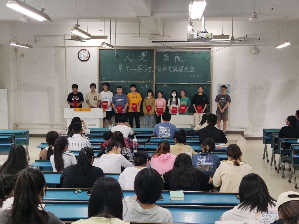 9月13日中午,人文学院第十二届学生会换届大会于新知楼B101顺利举行。人文学院党委副书记李沙娜,辅导员焦雪松,第十一届,第十二届学生会干部参加会议。会议由刘缙主持。