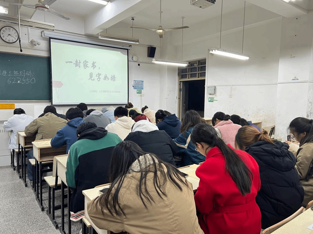 为传承百善孝为先的传统美德,弘扬中华优秀传统文化,11月14日晚,人文学院在求知楼A301开展“一封家书,见字如晤”感恩主题教育。学院辅导员老师和2023级部分同学参加,活动由张波涛同学主持。