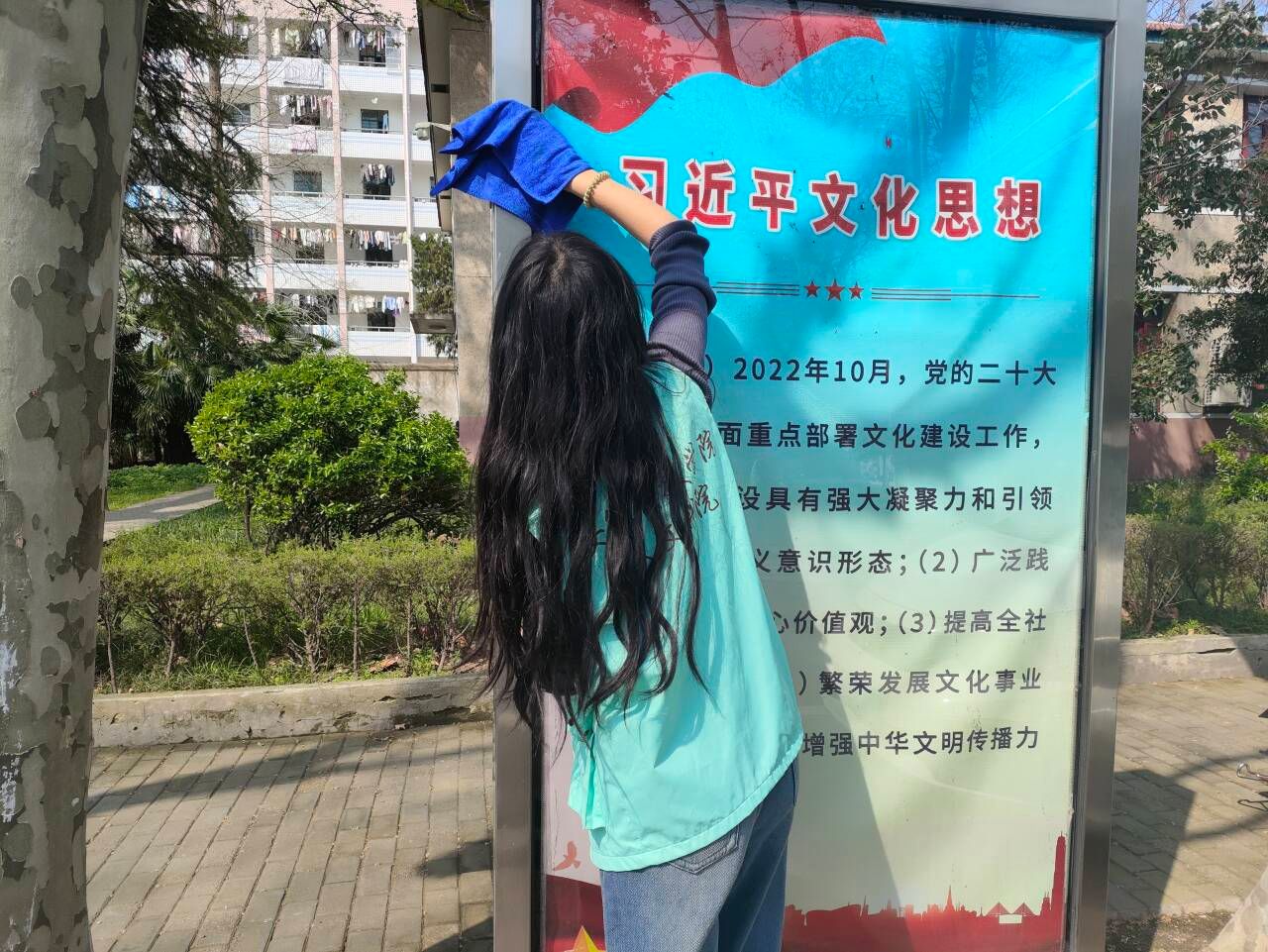 春风拂大地,万物萌生机。为共同打造美丽校园,提高校园环境美观程度,增强同学们对校园环境的关注度和保护意识,人文学院学生会于3月31日至4月1日在开云官方注册东区学知楼、求知楼和南门主干道开展宣传栏清洁校园志愿服务活动,众多同学积极参与。