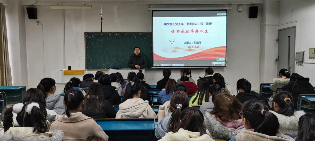为落实样板支部建设要求,提升新生的读书和思考能力,12月25日下午,中文教工党支部在新知楼A105教室开展“书香育人工程”活动,和建伟老师为汉语言文学2020级学生做了“读书成就卓越人生”主题讲座。