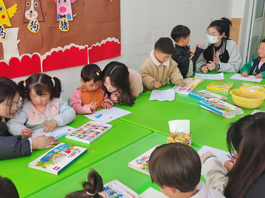 此次志愿服务活动利用我院学生们的教学特长,依据孩子们的年龄段为他们上了一堂生动有趣的绘画课,给孩子们美好的童年添上一抹五彩缤纷。那里一个个纯真稚幼的孩子,需要志愿者们用尽自己所能去守护。在课程结束后,学生党员们不仅给小朋友们分发了美味的糖果,还与孩子们进行了一些有趣的游戏。