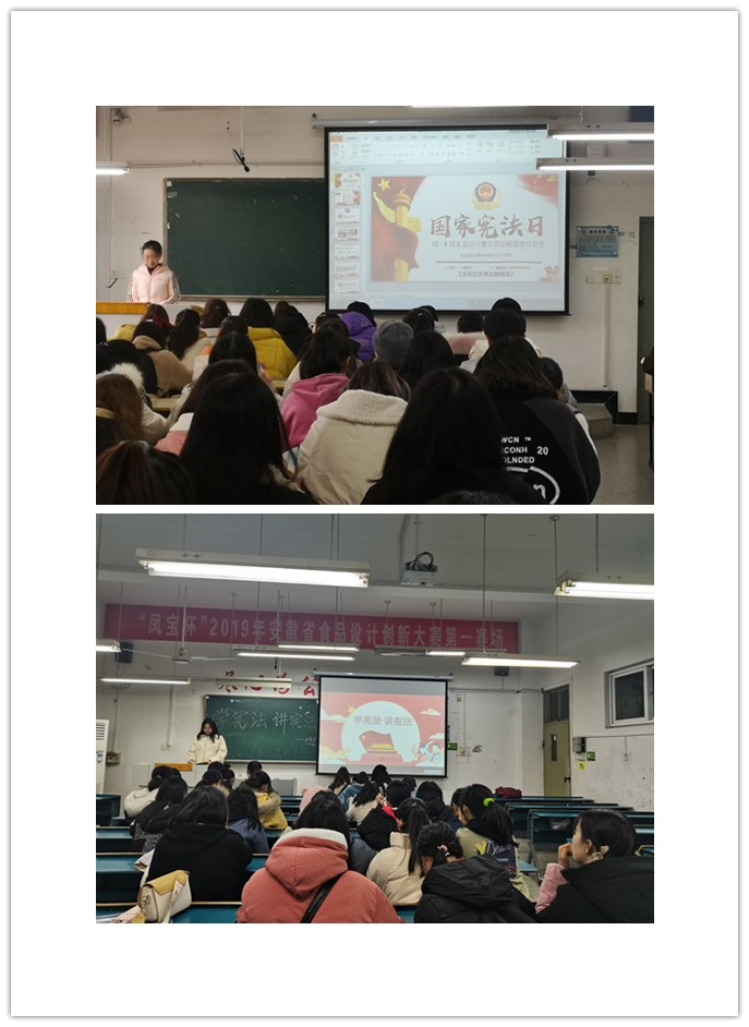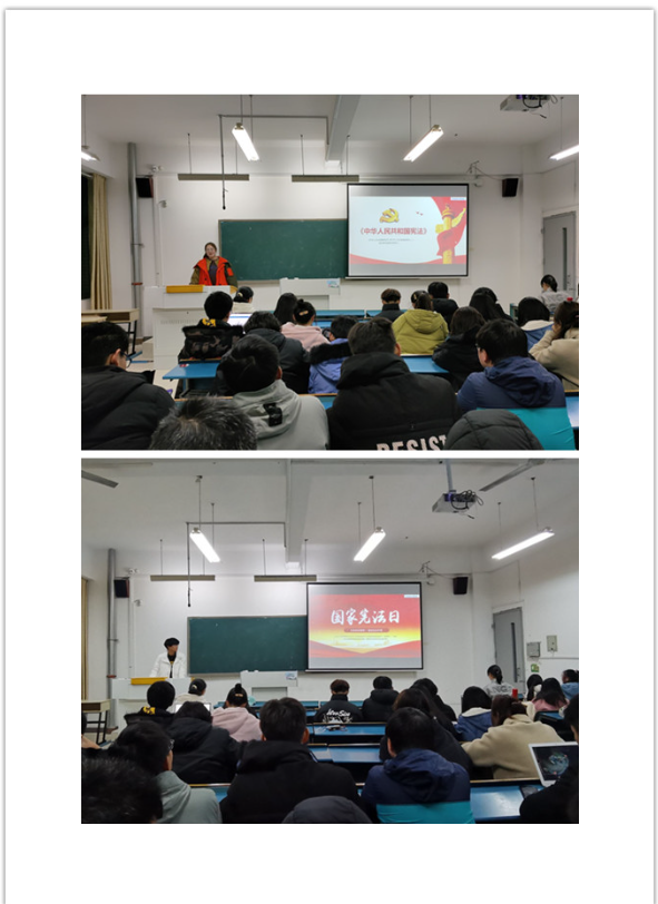 汉语言文学191班开展了国家宪法日主题宣讲活动,使学生深入了解“12.4国家宪法日”设立目的,公民的基本权利与义务、宪法精神及时代价值等。法学201班进行了“学宪法,讲宪法”主题演讲、观看宪法微电影,以及案例分析等活动。活动强化了学生的宪法意识、国家意识和规则意识,使宪法精神深入人心。(特约通讯员:李沙娜 审核:杜士凤)