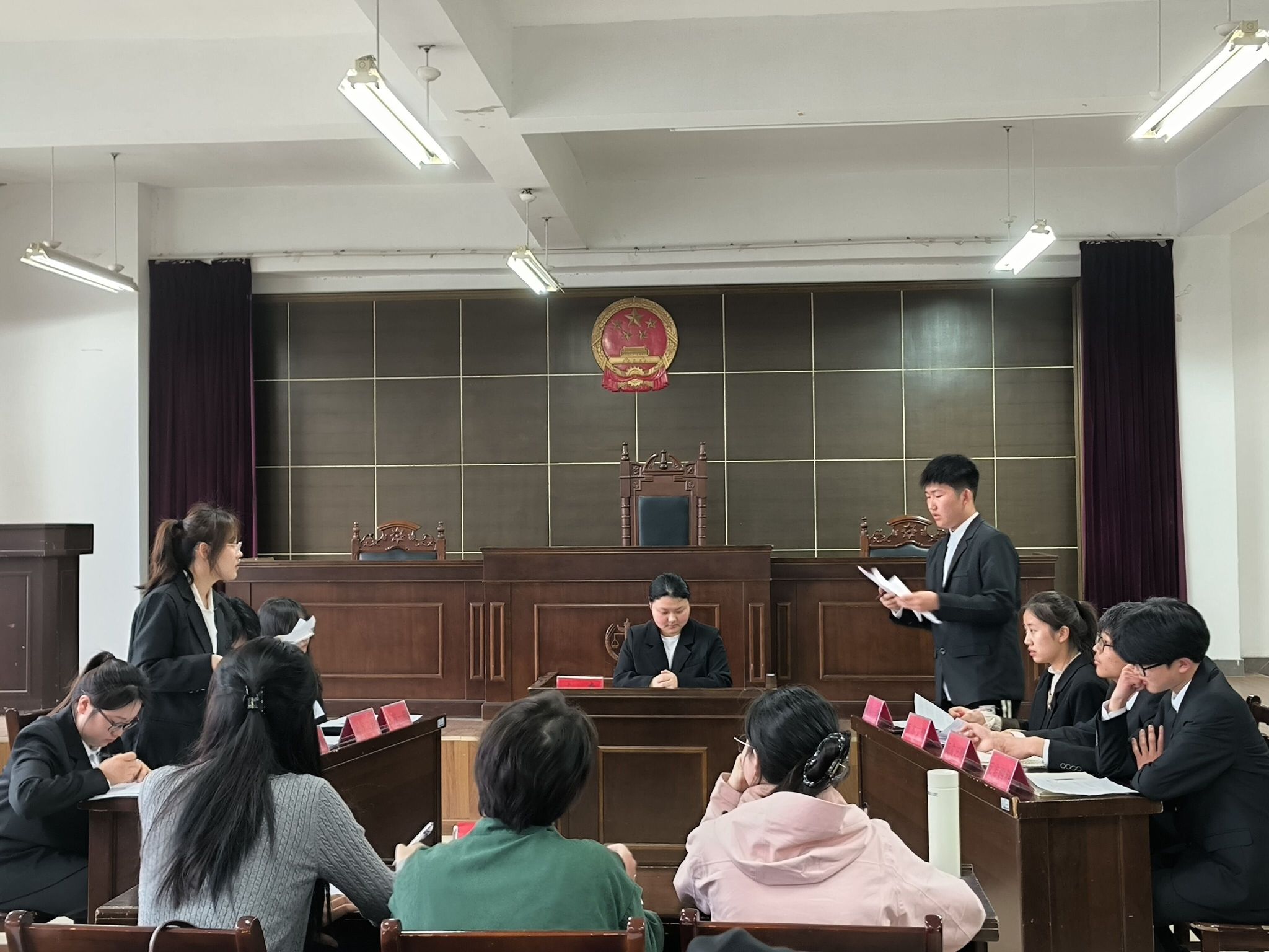 为推进校园法治文化建设,促进法学专业学生理论学习与实践锻炼相结合,提高专业素养和法律实务能力,4月14日下午,由人文学院法学社承办的开云官方注册2024年“未来律师辩论赛”决赛在模拟法庭举行。本次辩论赛由法学系主任张晓云担任教师评委,史梦洁、李旭、方巧慧担任学生评委;共有4组参赛队伍参与决赛角逐。
