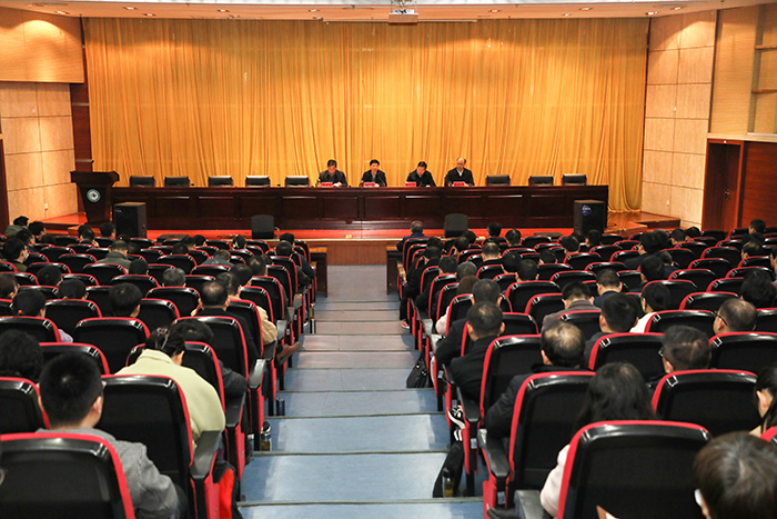 3月28日上午,我校在凤阳校区会议中心二楼报告厅组织召开本科教育教学审核评估线上评估迎评动员会。校领导,各职能部门科级以上干部,各二级学院党政领导、科级以上干部、系(教研室)主任、实验室主任、专业负责人等参加会议。会议由党委委员、副院长李升和主持。