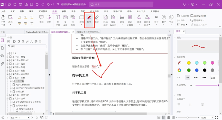 还可以通过绘图工具在 PDF 文档中绘制箭头、线条、正方形、矩形、圆形等图形,通过这些图形对文本或图像做一些标记。在格式面板中可以对线条、颜色等外观进行修改。