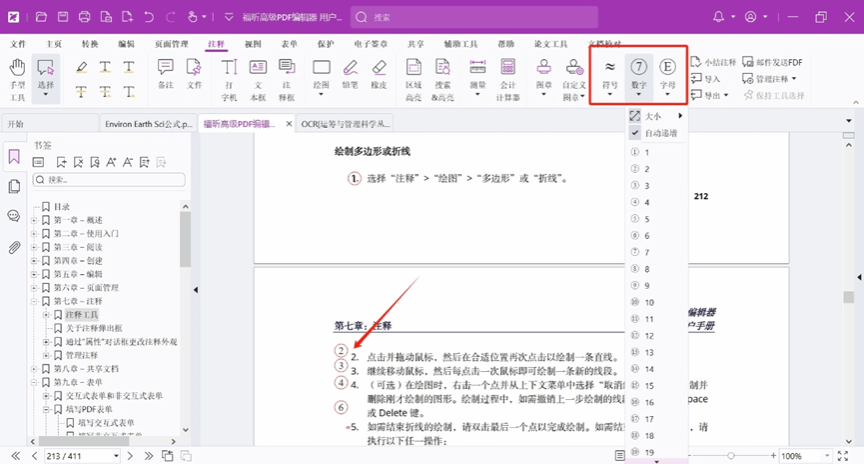 最新版本编辑器还支持添加符号,比如设置自动递增的序号。点击“选择”>“选择标注”,拉选符号后,可以打开右侧面板将它们进行对齐。
