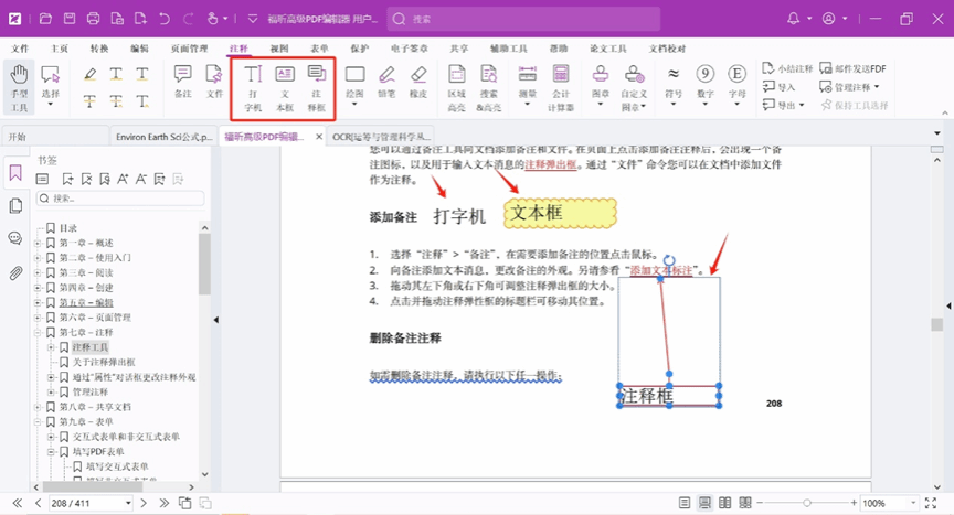 如果需要在文本中直接打字作为注释,我们还提供了打字机、文本框和注释框三种不同的形式。