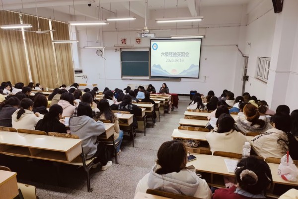 为帮助学生有效备考大学英语六级考试,3月19日下午,外国语学院在求知楼A座105教室举办大学英语六级考试经验交流会。交流会邀请了陶逸涵、刘帆、田婧、陈纪秀等四名在六级考试中取得优秀成绩的同学分享经验,2024级全体学生参加会议。会议由学院学生会学习发展部熊一杭同学主持。