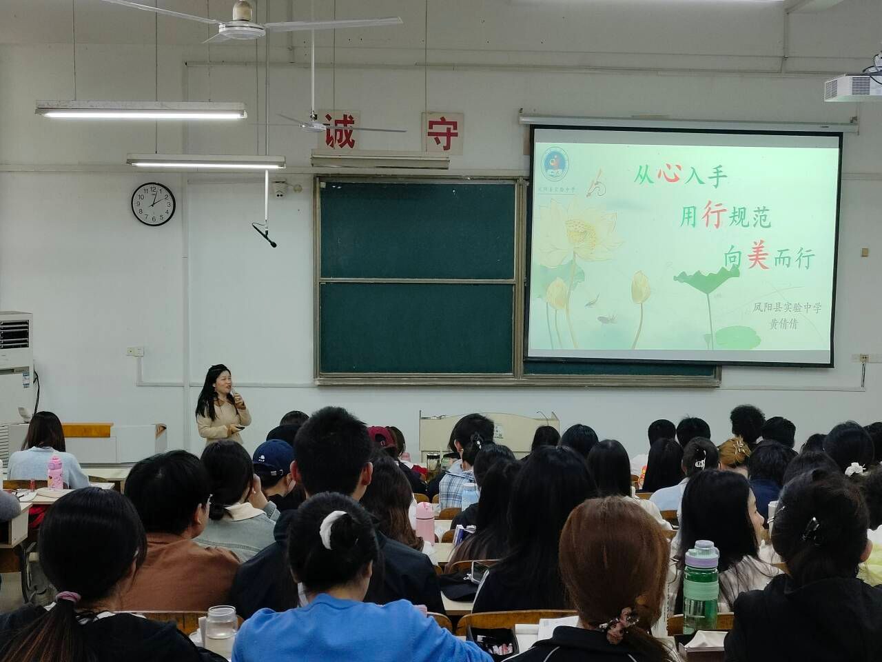4月15日下午,凤阳县实验中学优秀英语教师黄倩倩应邀来我校作师范专业班级管理专题讲座,2022级全体英语(师范)专业学生参加,讲座由外国语学院副院长洪民主持。