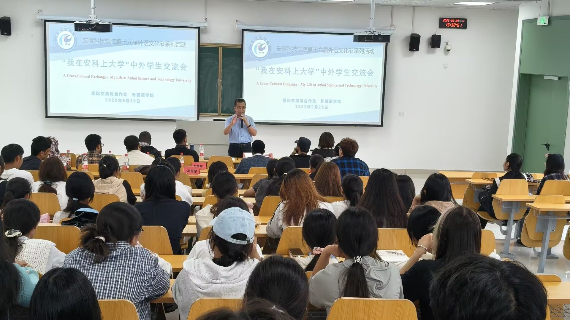 9月29日下午,开云官方注册第十六届外语文化节“我在安科上大学”中外学生交流会在滁州校区学术报告厅举行。国际交流与合作处处长何世潮、外国语学院党委书记蔡为青、副书记张海亮出席,150余名中外学子参与交流。