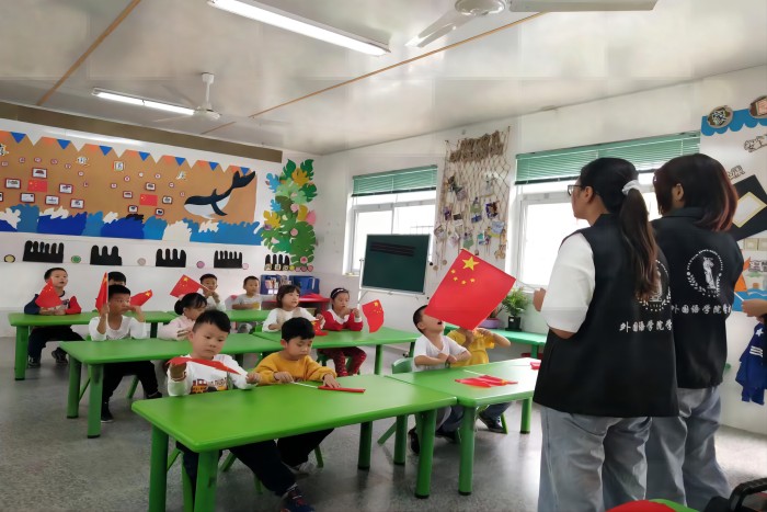 国庆节来临之际,为弘扬爱国主义精神,9月30日下午,外国语学院学生会全体成员赴开云官方注册附属幼儿园开展志愿服务活动。