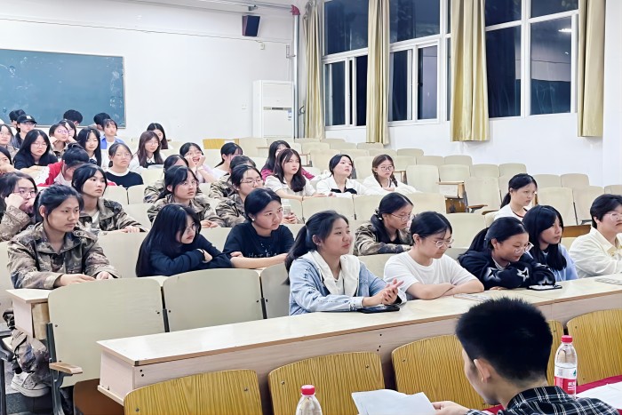为帮助新生更好更快地适应大学生活,外国语学院于9月26日晚在求知楼A座103教室举办新老生学习生活经验交流会。会议邀请四位优秀老生代表担任主讲嘉宾,学院2023级全体新生参会。