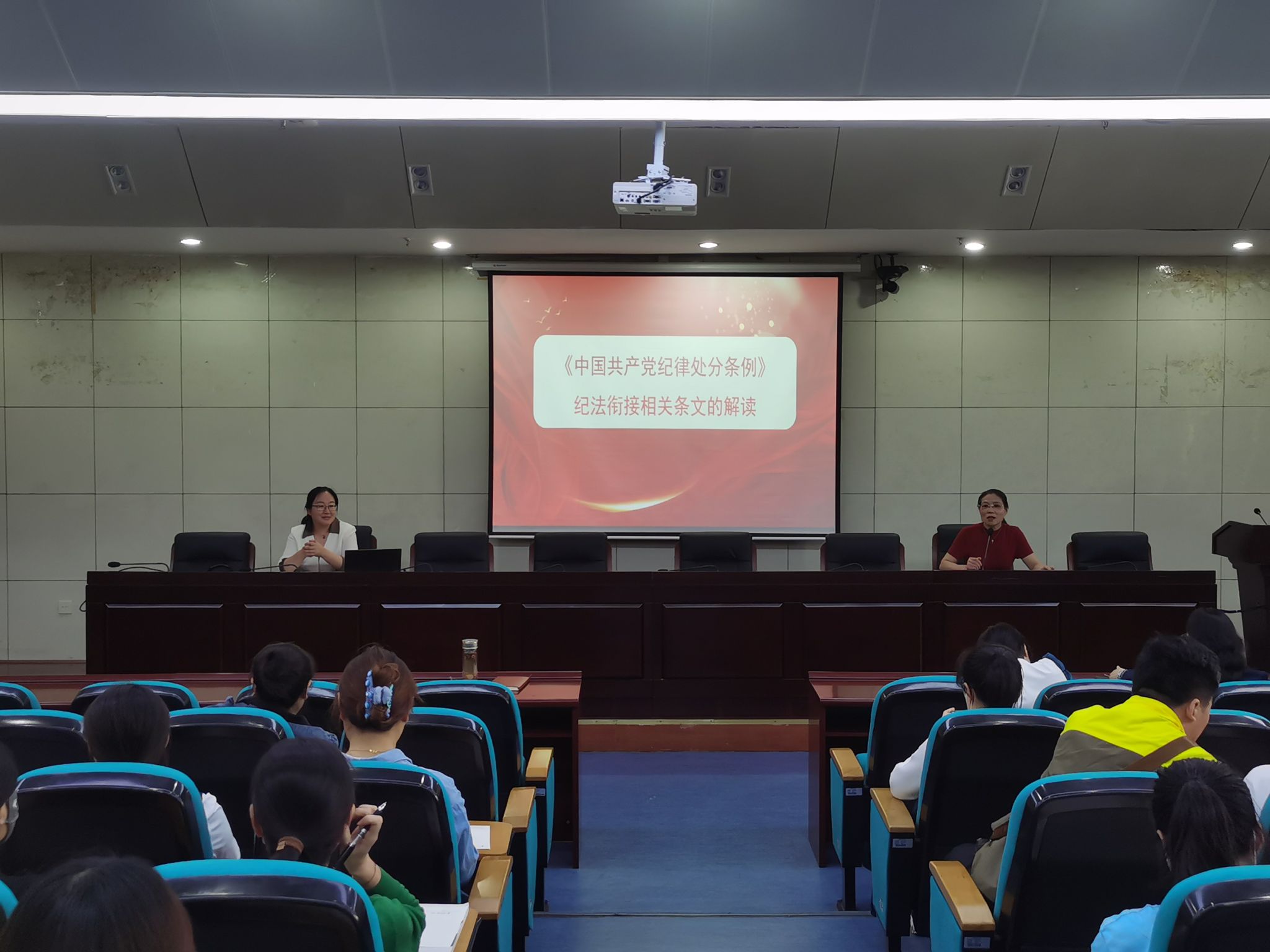 人文学院法学系主任、教工党支部书记张晓云博士,以《<中国共产党纪律处分条例>纪法衔接相关条文的解读》为题,讲授专题党课。张晓云介绍了新《条例》修订背景及其主要内容,重点阐释了新修订《条例》“纪法并行、纪严于法、纪法衔接”的显著特点,同时引用近几年发生在教育系统的违纪违法、师德失范典型案例,对违纪情形、处罚条款等内容作了生动详实的解读。