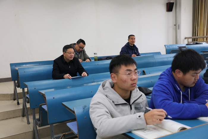 蒋德勤、李震与凤阳校区同学们一起走进课堂,分别听取了《大学生心理健康教育》和《汽车理论》两门课。听课过程中,蒋德勤、李震详细记录了课堂授课内容,认真填写了《听课情况表》。利用课间休息时间,蒋德勤、李震与任课老师亲切交谈,并对老师认真的教学态度以及丰富的教学内容予以赞赏。此外,还就教学改革、课程思政等方面的工作提出了具体的指导意见。韦文联、黄远友、王强、黄友锐、李升和等校领导也均按照既定的听课方案,分别深入龙湖校区、凤阳校区课堂一线,听取了《管理统计》、《园艺植物保护通论》、《设施栽培技术》、《数字电子技术》等课程。