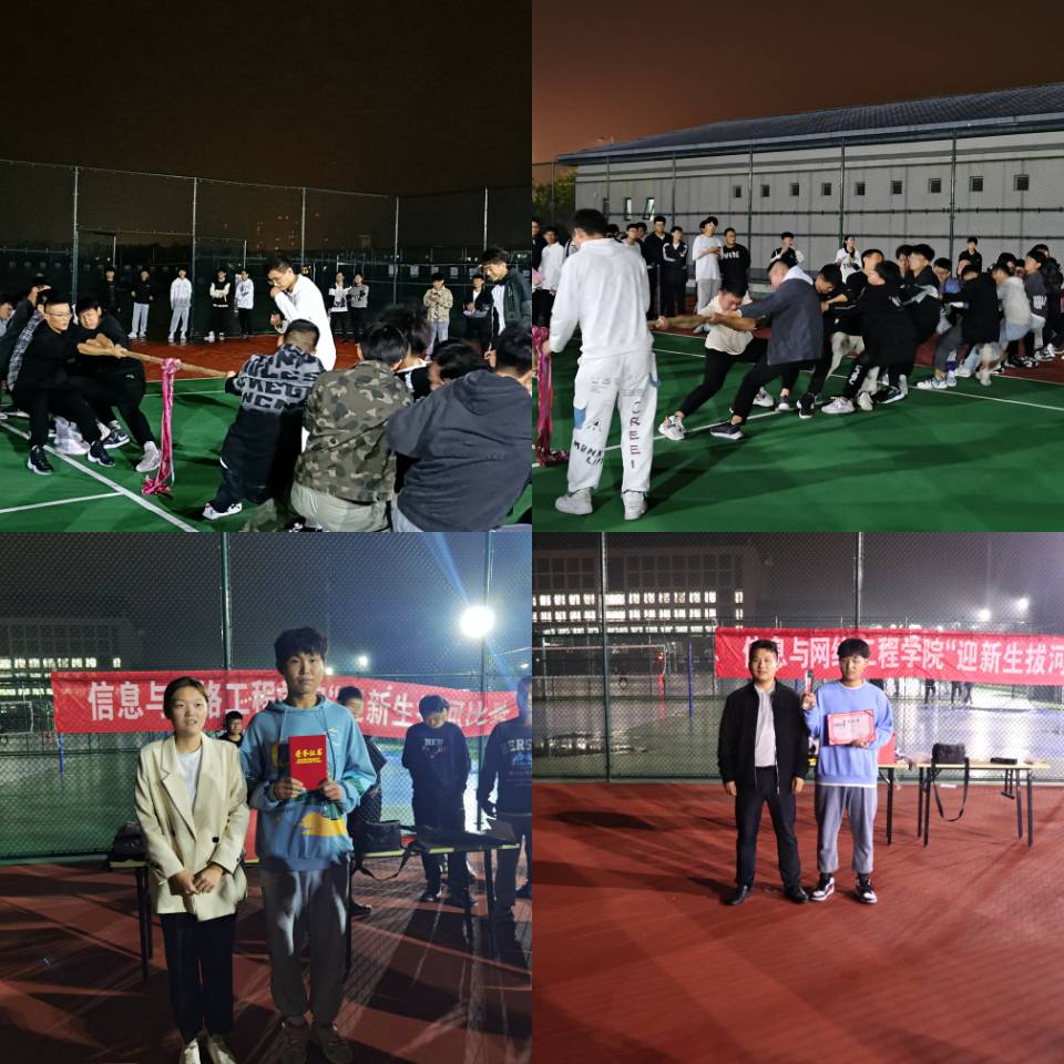 为促进2021级新生之间的交流,增强班级凝聚力,弘扬体育精神,10月8日,信息与网络工程学院于校东侧网球场举办了第五届“新生杯”拔河比赛。本次比赛由学生会指导老师崔北坤主持,2021级全体新生参与。