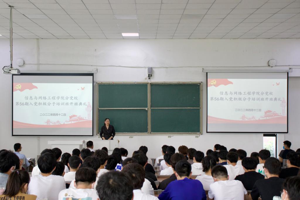 为加强对入党积极分子进行党史党性教育,提高党员发展质量做好党员发展教育工作,4月12日下午,信息与网络工程学院在致知楼C111举办第56期入党积极分子培训班开班典礼。学院党委副书记、纪委书记韦乃学,专职辅导员崔北坤出席会议。培训班143名学员参加会议,会议由专职辅导员陈凯主持。