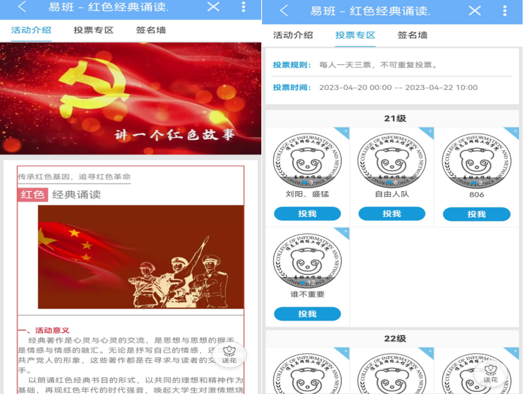 本次比赛以“沐浴百年历史 朗诵红色经典”为主题,采用了线上线下相结合的方式进行,极大地激发了学生的参与热情。参赛选手以慷慨激昂、铿锵有力的声音,诵读着一部部红色经典,再现一段段不朽岁月,把对党和祖国的情感表达的淋漓尽致,展现出新时代广大青年斗志昂扬的精神面貌。活动还通过生成视频、音频链接的形式,在易班平台搭建轻应用进行学生投票。最后,在经过一系列激烈评比,计算机科学与技术221班朝天阙团队以一部《说到死,我并不惧怕》的红色经典诵读在比赛中摘得桂冠。