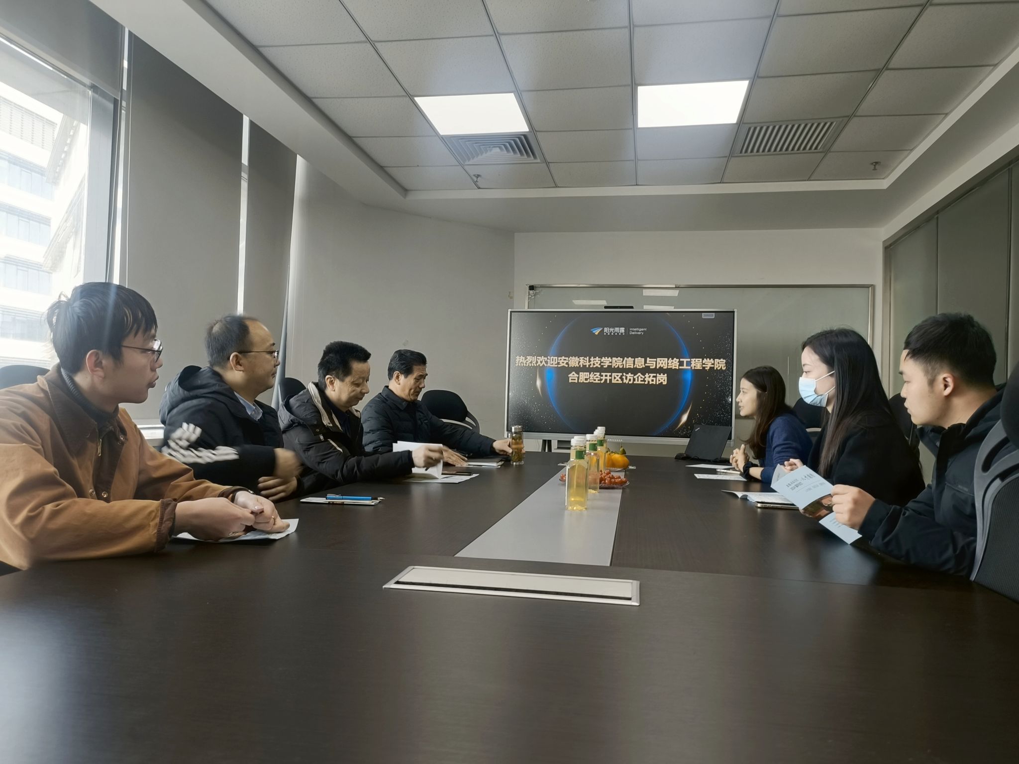 3月9日上午,考察组一行受邀到访安徽耕匠农业科技有限公司,公司总经理朱立猛介绍了个人发展经历和公司的基本情况,余宏杰介绍了学院基本情况,双方重点就校企建立合作共建,特别是在智慧农业、研究生实习(就业)等方面进行了沟通、谋划,希望加快进度,促成合作项目尽早落地,并建立常态化合作机制。