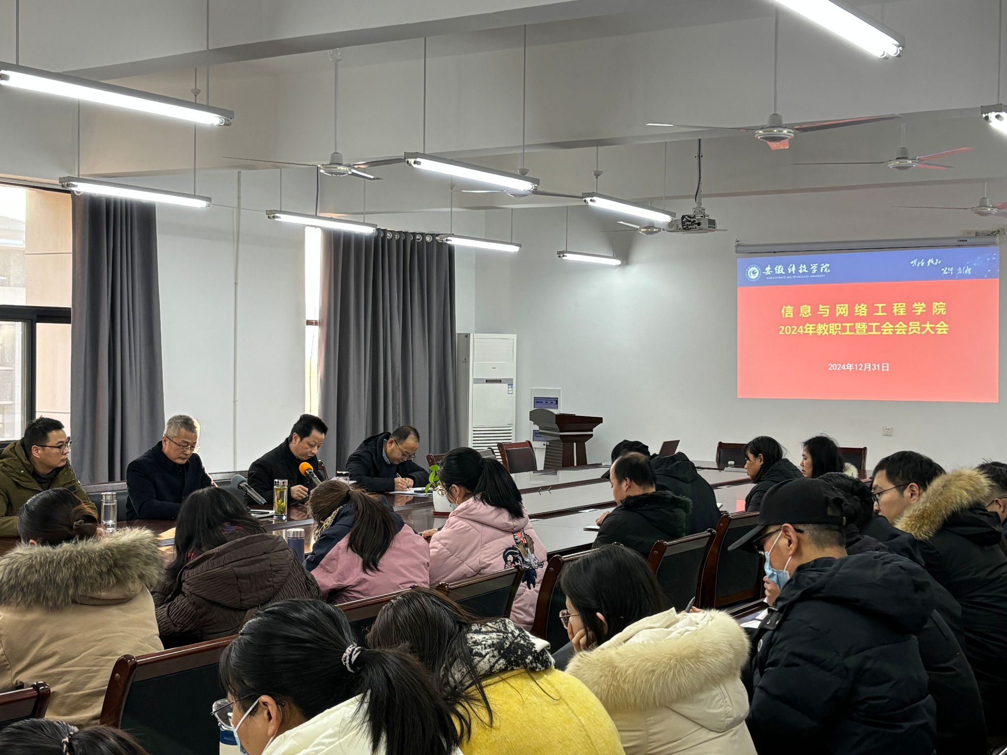 12月31日下午,信息与网络工程学院在尚行楼B418召开2024年教职工暨工会会员大会。学院党政领导以及全体教职工参加了会议,会议由院党委书记王振其主持。