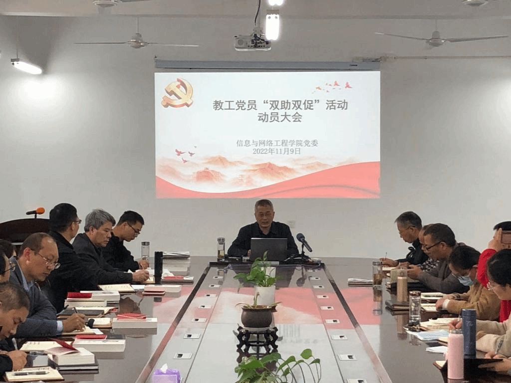 为深入贯彻落实党的二十大精神,充分发挥教工党员在促进学生成长成才中的模范带头作用。11月9日下午,信息与网络工程学院在尚行楼B418会议室召开教工党员“双助双促”活动动员大会。学院全体教工党员参加了会议,会议由院党委书记王振其主持。