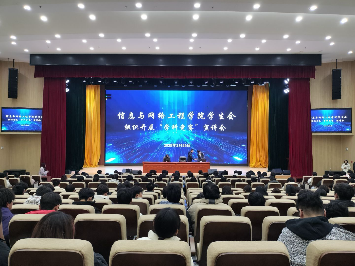 为增强广大学子学科竞赛的意识,提高学科竞赛水平。2月26日晚,信息与网络工程学院在东辅楼报告厅组织开展“学科竞赛”宣讲会,学院学生会指导老师崔北坤、信息技术创新工程实验室队长李世鹏、副队长王伪蓉王出席了本次宣讲会,学院2024级全体学生及学生会全体成员参加本次会议,会议由崔北坤主持。