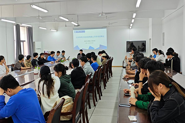 为促进2025届毕业生高质量充分就业,4月9日下午,信息与网络工程学院在尚行楼B418会议室举办北京热热文化科技有限公司专场招聘会。北京热热文化科技有限公司项目总监安磊、北京热热文化科技有限公司蚌埠基地负责人杨锐峰来校招聘,招聘会由安磊主讲,学院60名有意向应聘北京热热文化科技有限公司的学生参加了招聘会。