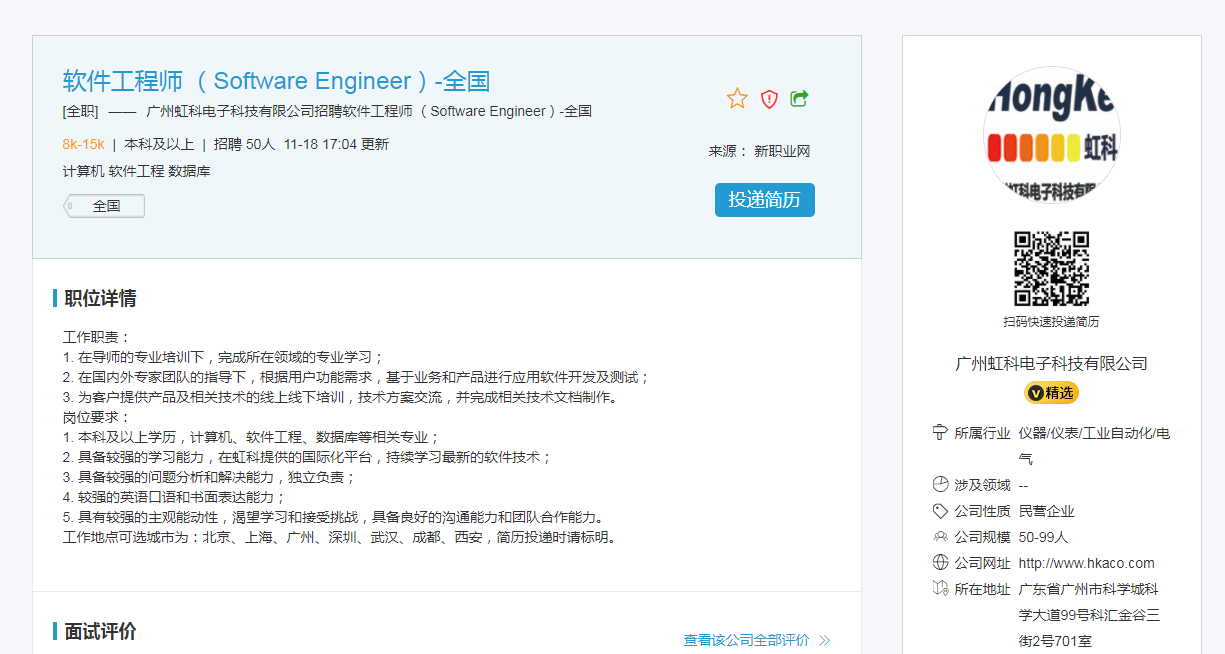 广州虹科电子科技有限公司招聘信息