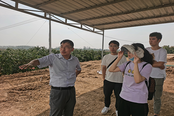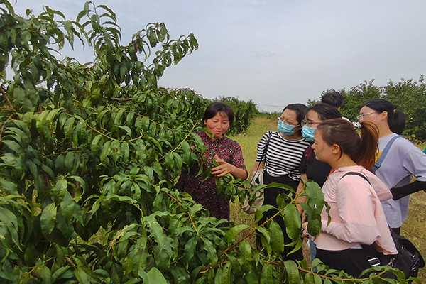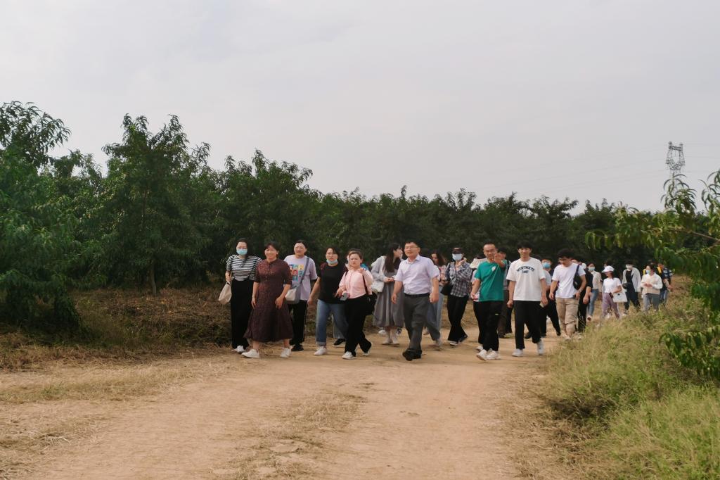 一路上,面对同学们提出的各项疑问,李国燕都一一解答。从最初的土地流转、寻求政策支持、投资资金,到桃树种植、品种搭配、营务管理、除虫防害,再到采摘销售、物流储存、品牌搭建、园区功能开发,与同学们进行了深入的交流。