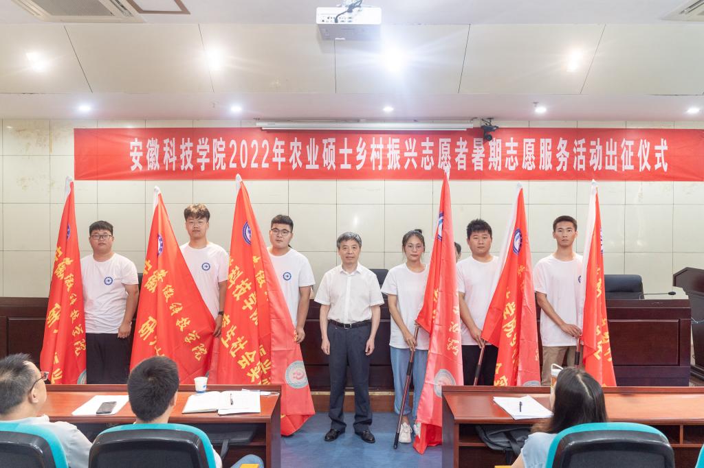 蒋德勤宣布开云官方注册2022年农业硕士乡村振兴志愿者暑期志愿服务活动正式启动,并为12支暑期志愿服务团队授旗。同时,他对各志愿服务团队提出了殷切希望,寄语了美好祝福。